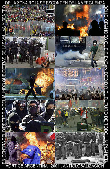 A new "ghost" is travelling around the world. From Seattle, Prague or Genova, to the most remote places of the planet, the scream of the same phenomenon is roaring aloud, the phenomenon with which the new century is beginning, the new millennium: the Global Resistance Movement. On the one hand, the world rulers, in their eternal planetary chess game, meet periodically to polish and activate their expansionist politics under the orders of the great capital. On the other extreme, the disherited of the earth organize themselves and resist to the application of these plundering politics, which not only attempt against their human existence, but also against their environment and against their different cultures. It is the phenomenon of the globalization and its immediate response, the Global Resistance. In the same way as the utopic socialism was the response to the industrial revolution of the 19th Century, at the end of the 20th and the beginning of the 21st the anti-globalization movement confronts the system, which, since the political collapse of the Soviet block, exerts a world hegemony without comparison in the history of humankind: capitalism in its maximum expression. Never before, a few people had had so much power and control over so many with an immediate consequence: more poverty, more marginalization and more discrimination. In other words, a shameless and systematic dehumanization for the benefit of a commercial and financial dictatorship. But this immense majority neither resignate nor forget and jumps to resist the globalization and, in its turn, to globalize the resistance. It is a matter of life, since they daily experience the constant plundering of their resources. From the movement The Without Earth in Brazil to the Anti-Transgenic in Europe, a society is demanded, where the values as justice, equality and liberty have priority over the ideas of Wall Street. A society able to limit the power of the multinationals in benefit of the majorities. A society that consolidates the democratization of the institutions and a more equitable distribution, and therefore, a society with more justice. Although the resistance movements to these neoliberal politics form a varied social and cultural spectrum, due to the very different contexts in which they have their origins, the globalization of their demands obeys to a paradox and new phenomenon: the revolution of the electronic communications and internet. When we are able to be informed through the net, almost instantaneously, of the mortal drama that has taken place in Genova, of the pilgrimage of the driven out in Brazil, or of the sad immigration of the Moroccans in Spain, we are being much more than passive witnesses of their causes; something impossible to imagine a few years ago. The promptitude of the information makes the communication dynamic. Solidarity chains and lists of opinion circle in minutes. Thousands of images and texts inform us in detail on any event, in constant actualization, making us participants. Internet has revolutionized the concept of mass media with a great projection into the daily life of the individuals; we cannot be neutral anymore under the excuse of not knowing or ignorance. Thanks to internet, massively used by the anti-globalization movements, thousands of people have been able to meet in the summit conferences of the G-8, gaining great importance the intensity of their demonstrations. It is in this point, where mail artists and net-art workers enter into action. With our sense of solidarity and social justice, we fully support this cause, adding our will and knowledges to the strategies that are involved in this global resistance. We want to encourage the "social creativity" in response to the brutal attempts of standarizing the public and private conducts, confining them within the limits of the so-called globalization by means of a model of ravenous and plundering life.